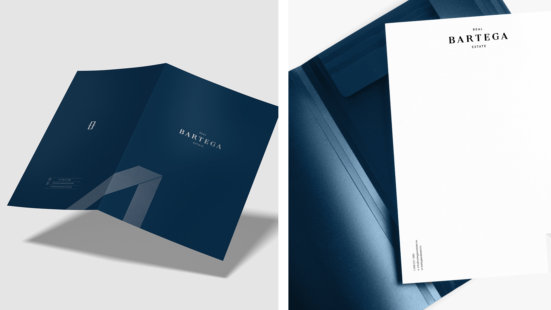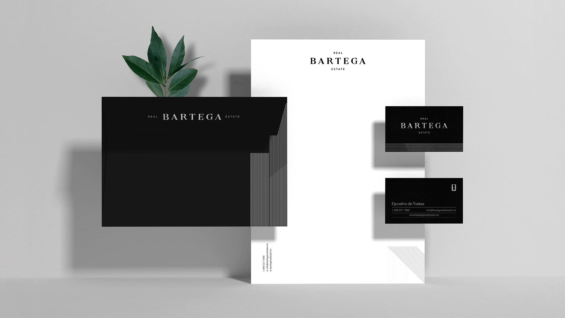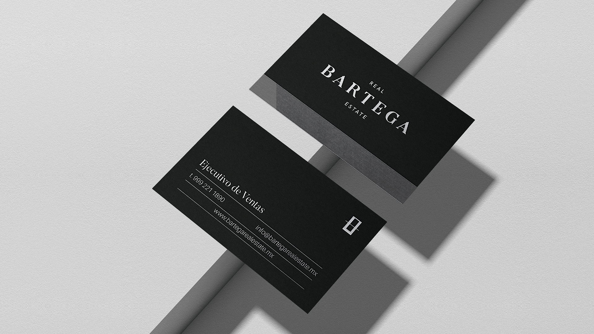 Para esta empresa se solicitó la creación de una identidad que reflejara elegancia y formalidad, es por eso que se eligió una tipografía con serifas y una gama cromática que incluye acabados plateados que realzan la presencia de la marca como un “real estate” de calidad