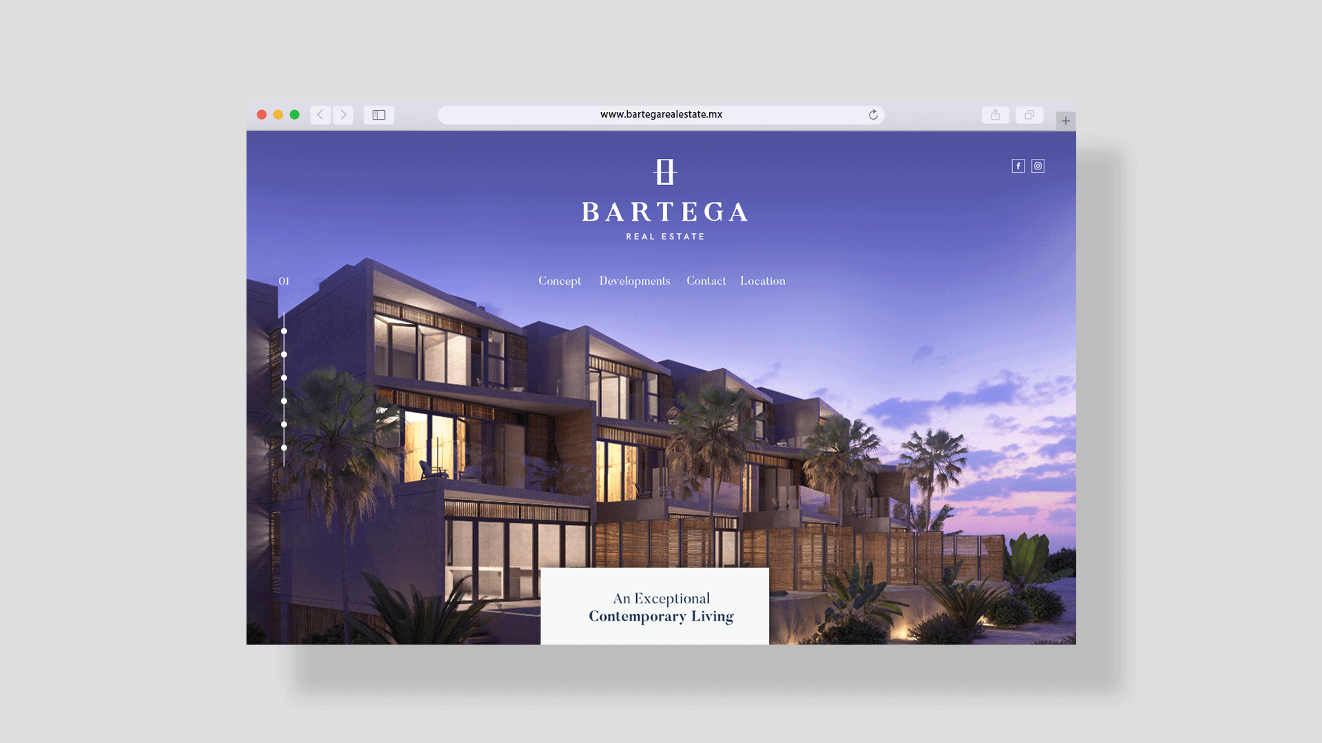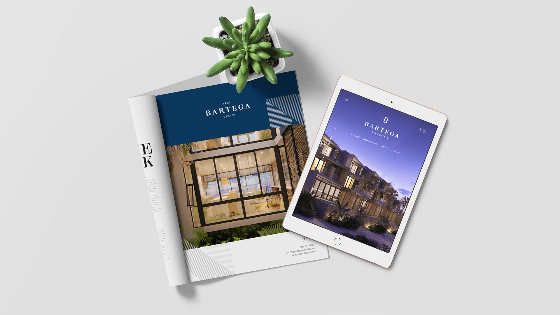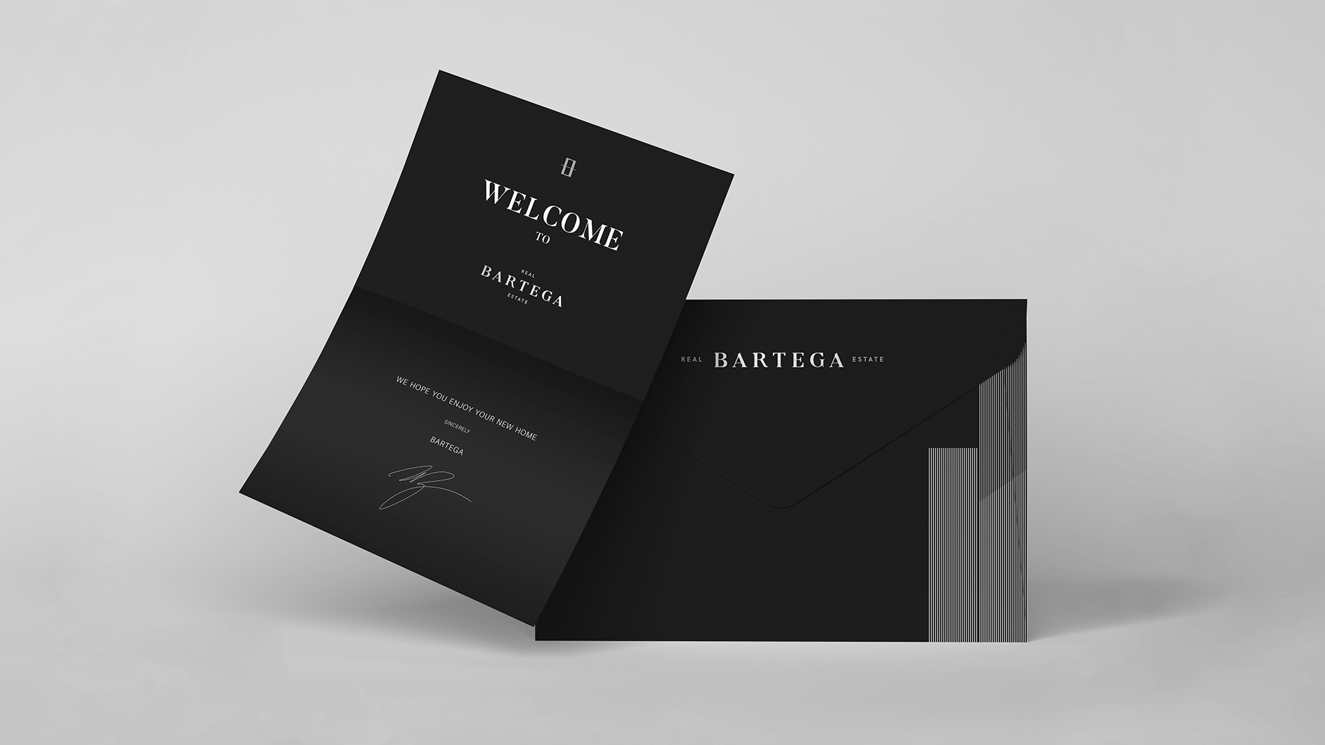 Para esta empresa se solicitó la creación de una identidad que reflejara elegancia y formalidad, es por eso que se eligió una tipografía con serifas y una gama cromática que incluye acabados plateados que realzan la presencia de la marca como un “real estate” de calidad