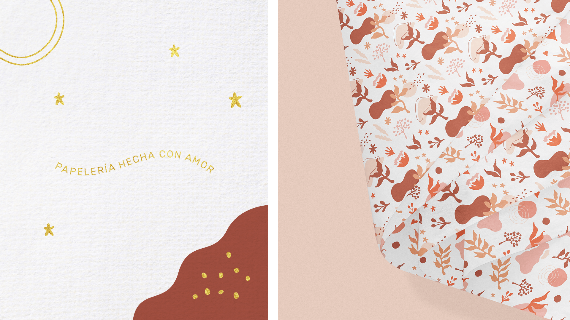 De igual manera se creó el logotipo, en donde se utilizó una tipografía serifada con el fin de formar una imagen clásica que resulte elegante y formal, por otro lado, las minúsculas y el grosor de la tipografía le dan un toque más moderno. El distintivo “papelería bonita” lo aplicamos sobre una línea ondulada para crear dinamismo y de esa manera hacer más interactivo el logotipo.