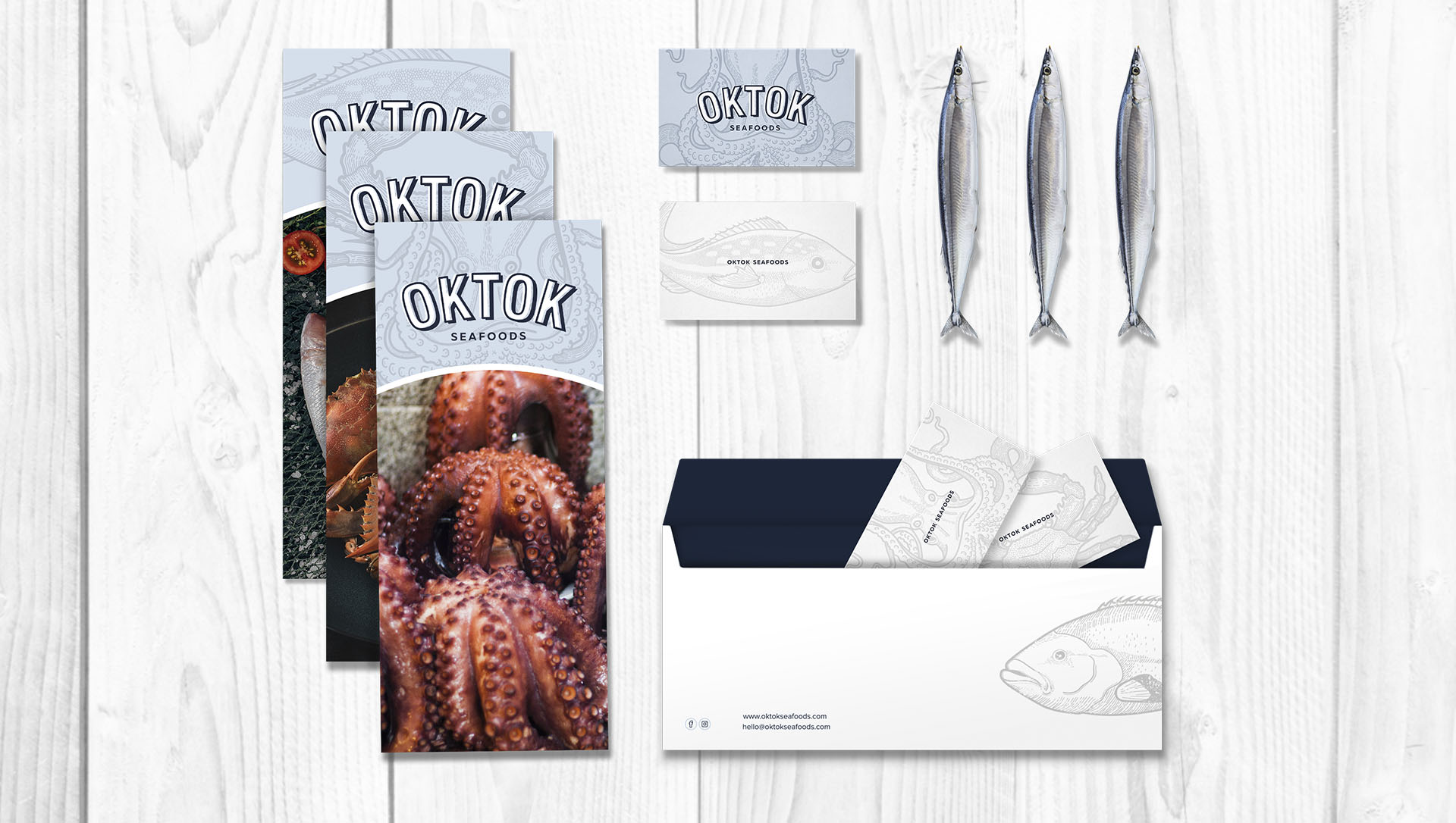 Esta identidad la complementan una serie de 7 ilustraciones realistas (hechas a mano y digitalizadas) que se hicieron para representar gráficamente cada producto que exporta la marca. Como figura principal se utiliza el pulpo (de cuyo nombre se forma la marca) y junto con el encontramos un caracol, una langosta, un cangrejo y tres peces que son fauna de la península de Yucatán.