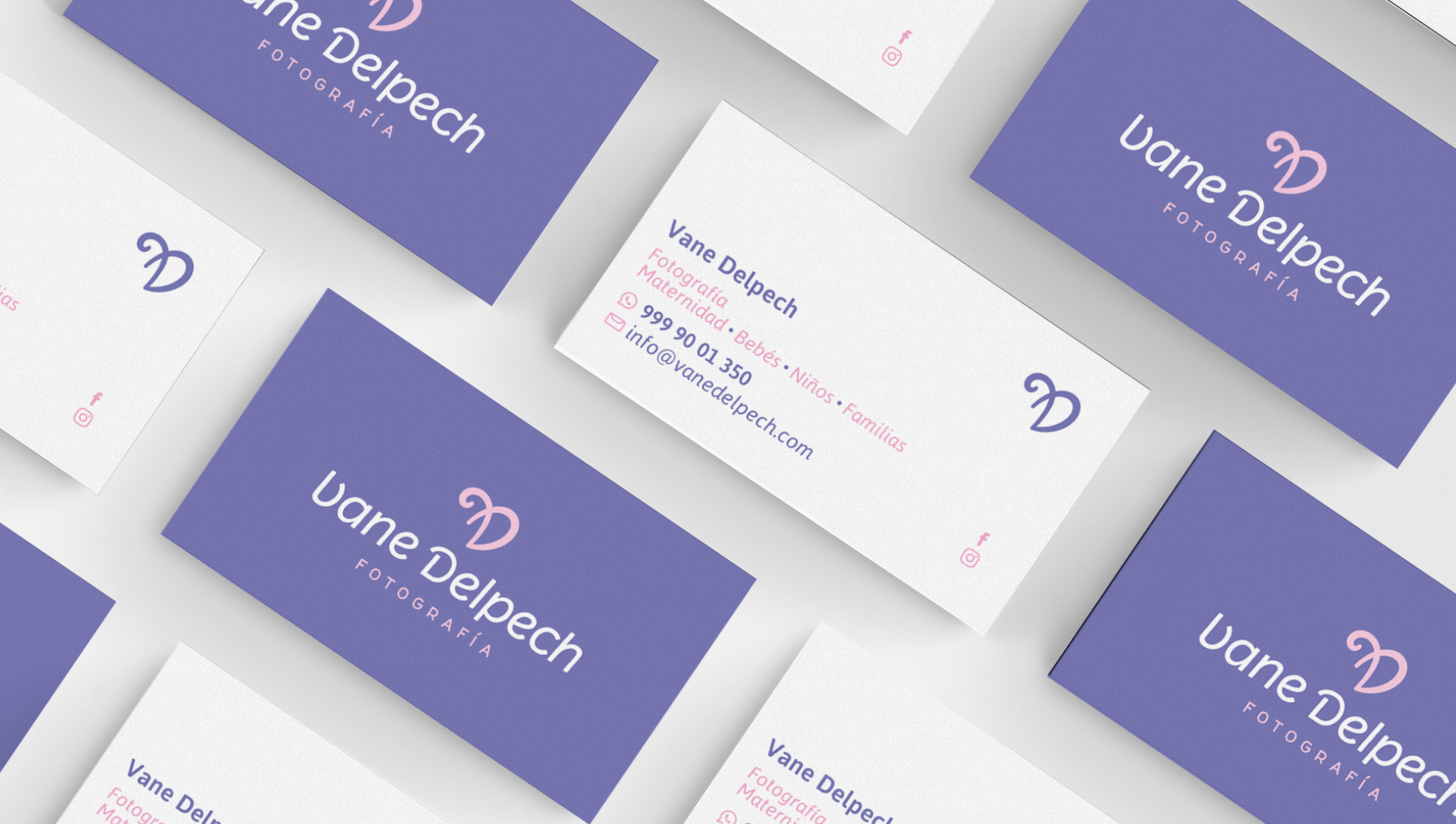 En la parte superior del nombre agregamos un ícono que tiene doble significado. El primero es un corazón, que simboliza el esfuerzo y dedicación que Vane le pone a cada sesión; y el segundo es la unión caligráfica de sus iniciales V y D.